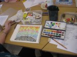 John then handed out a summary document for Making Pearls as background reading for taking away from the Day (further reading: an online copy of this summary). He then asked the group to think of symbols for the different stages in the creative life-cycle process and to turn their thoughts into a creative work of art. The group really got stuck into this task.